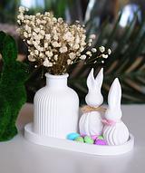 The scene is brought to life by two "Bunny Bloom" figurines, one slightly taller and a companion accented. Their unique, flowing-line bodies mimic the organic curves of the vase, creating a seamless visual flow. All pieces rest on a smooth, large oval display tray, which is accented here with vibrant, speckled (mini eggs mini eggs not included for display purpose only) in spring greens, purples, and blues. Hand-finished in a crisp matte white, this set is the perfect statement piece for an entryway console, a dining room sideboard, or a refined mantel display.